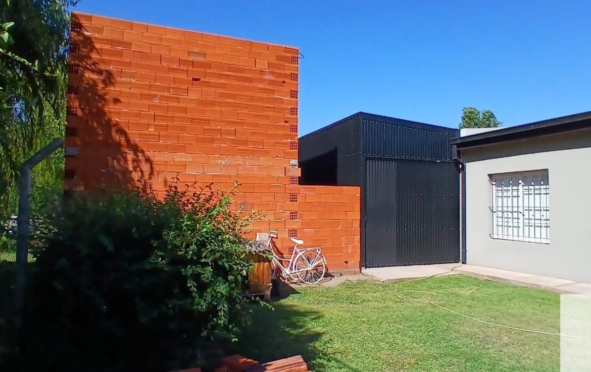 Casa en venta compuesta por living comedor, cocina, baño, dormitorio, galpón y depto a terminar cocina comedor, baño, dormitorio en planta alta, cochera descubierta, sobre lote de 16.50 x 23,55 metros, servicios de luz, gas natural y agua corriente. Impecable estado.