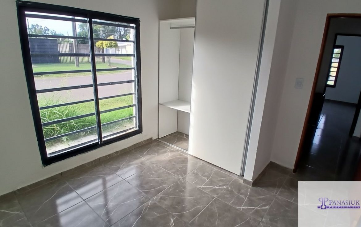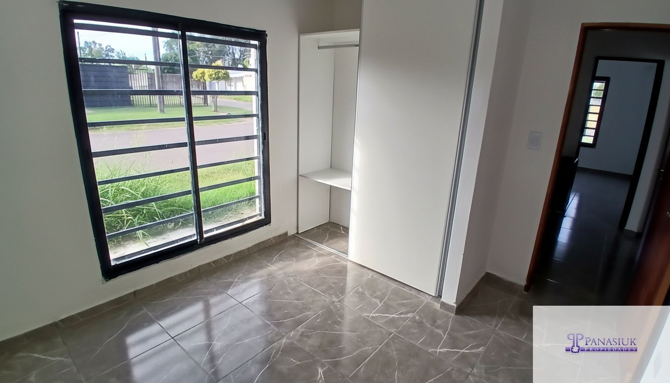 Casa esquina compuesta por: 2 dormitorios con placard, baño, living comedor, cocina, cochera/patio con parrilla.