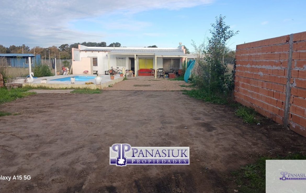 Casa quinta compuesta por dormitorio, baño, cocina comedor todo integrado, amplio patio con pileta y parrilla, sobre lote de 12 x 37,15 metros. Servicios de luz y gas natural. Financiación conversable.