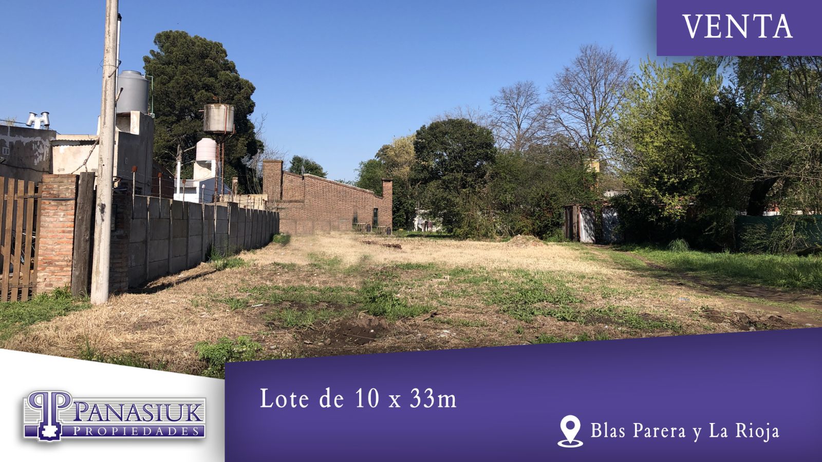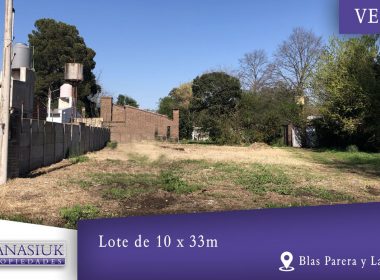 Lote de 330m2 (10 x 33m). Cuenta con servicio de luz y gas. Financiación.